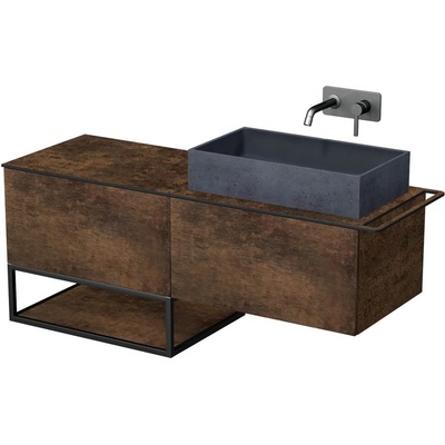 Závěsná koupelnová skříňka pod umyvadlo v barevném provedení měď s matným povrchem o rozměru 140x58x50 cm. Povrch v provedení voděodolné lamino.