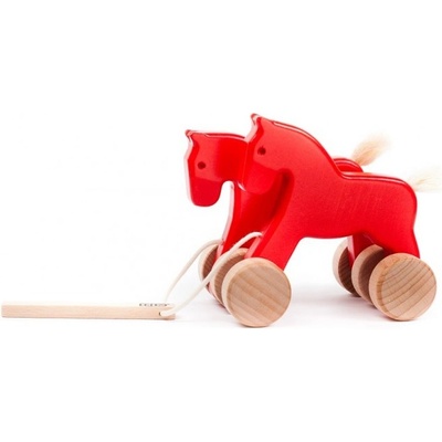 Rozměr balení: 15,5x9,5x13 cm Rozměr: 14x9x13 cm Věk: 1,5+ Materiál: dřevo Dva koně se řítí vedle sebe a skáčou. Který vyskočí výš? Koně střídavě cválají. Když první stoupá,...