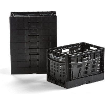 Balení 10 skládacích přepravek, které při skladování zabírají minimum místa. Jsou vyrobeny z velmi odolného recyklovaného materiálu, který vydrží opakované drsné zacházení....