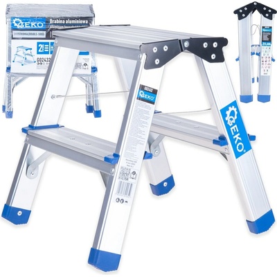Oboustranné hliníkové schůdky 2stupňové GEKO G02432 | Nosnost 150 kg Ideální řešení pro domácí, dílenské i instalační práce. Umožňují pohodlný přístup ke stropům, horním...
