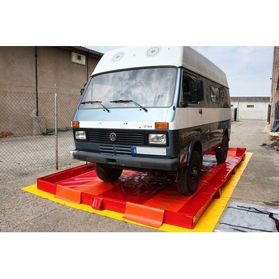 rychlá příprava v terénu a snadný nájezd k vaně se standardně dodávají nájezdové pásy a ochranná podložka, výrazně zvyšující odolnost a životnost samotné vany materiál PVC...