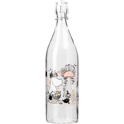 Design: Tove Jansson Designová skleněná láhev s uzávěrem zdobená milým motivem pohádkových Muminků, kteří si užívají den na pláži. Muminek s maminkou sbírají mušle, slečna...