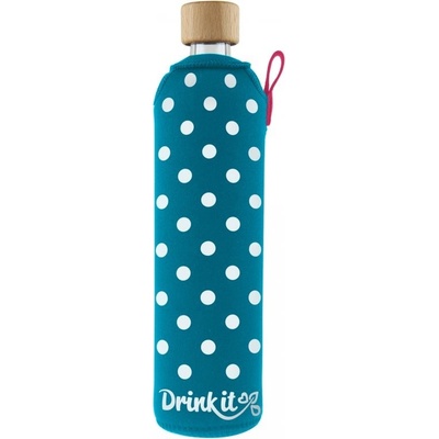 Drink it - skleněná láhev PUNTÍK to je stylová a praktická láhev z tvrzeného skla v elegantním neoprénovém kabátku pocházející z Čech. Vyrobena v ČR Láhev z...