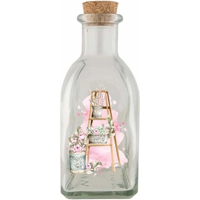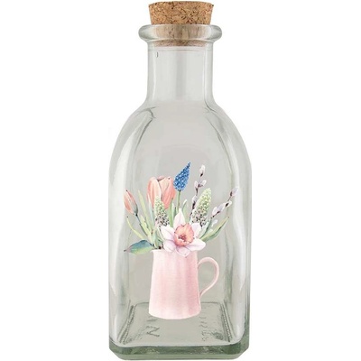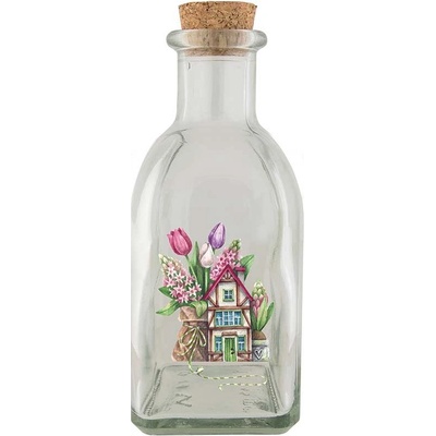 Skleněná lahev s korkovým uzávěrem o objemu 500 ml s grafickým potiskem. Ideální jako interiérová dekorace. Rozměry: Výška - 19 cm Průměr dna - 6,5 cm