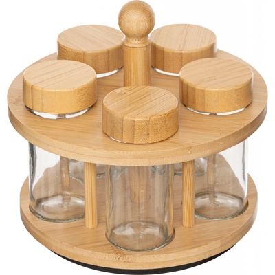 Otáčecí nádoba na koření z bambusu a skla - praktický design šetřící místo v kuchyni Praktický design: Otáčecí nádoba na koření COZY je ideálním řešením pro každého, kdo si cení pořádku v kuchyni. Díky kompaktním rozměrům (17 x 17,5 cm) se vejde na každou polici nebo...