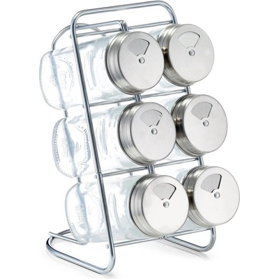 Skleněné nádoby na koření na kovovém stojanu, 9,3x15x18 cm Výrobce: Zeller Zeller Spice Toolbox je kompletní sada koření, která vytváří šest praktických sklenic na koření s dávkovači a ocelový stojan, který usnadňuje segregaci kuchyňských nádob a umožňuje ukládat je...