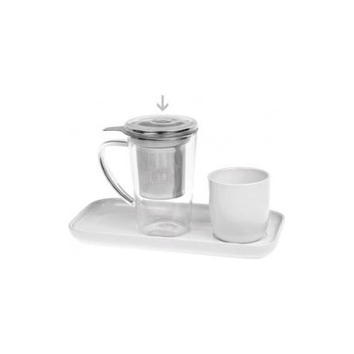 Itaka skleněný hrnek 0,4 l s víčkem. Sestavte si kompletní set Itaka, který se skládá ze skleněného hrnku, nerezového filtru, porcelánového odkladače na filtr a podnosu.
