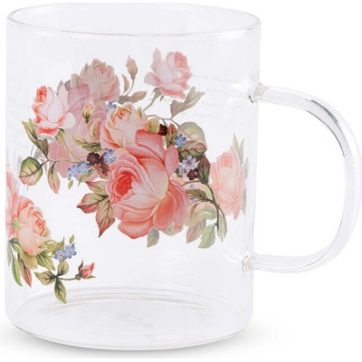 Krásný skleněný hrnek s romantickým motivem růžiček bude milou ozdobou vaší kuchyně či jídelny a při každém doušku vašeho oblíbeného nápoje vás přenese do rozkvetlé zahrady....