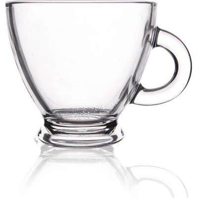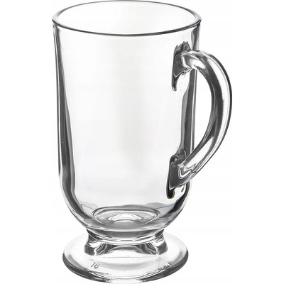 Klasický skleněný hrnek s uchem. Hrnek je ideální na horké nápoje jako je čaj nebo káva. Vyrobený ze silného lisovaného skla.