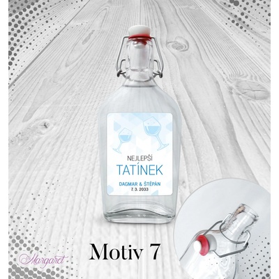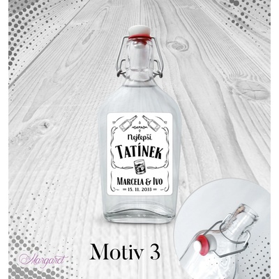 Krásný dárek pro tatínka. S vašimi jmény, datem svatby a nápisem “Nejlepší tatínek”. Skleněná láhev s pákovým uzávěrem, etiketa na samolepícím papíře s vyšší gramáží. Po...