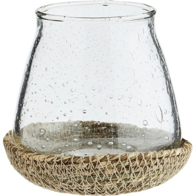 MADAM STOLTZ Skleněný svícen na jutovém tácku 9 cm, čirá barva, přírodní barva, sklo. Máte rádi svit svíček a hledáte originální svícen? Tento, z dílny dánské značky Madam...