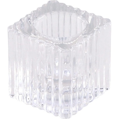 Elegantní čirý skleněný svícen ve tvaru žebrované krychle Svícen je populární pro svou čistou jednoduchost a hodí se ke všem typům slavnostních tabulí. Krásně ladí i s dalšími...