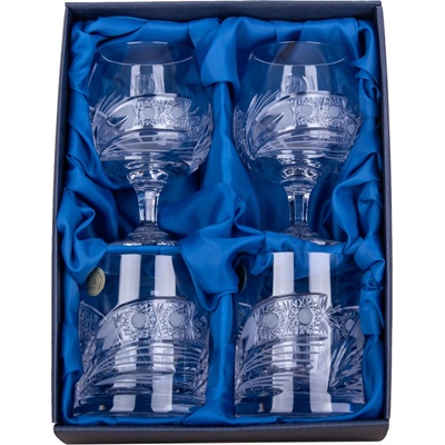 Ručně broušené sklenice na whisky a rum s ručně malovanou zlatou linkou. Vyrobeno z olovnatého křišťálu 24 % PbO. Baleno v krabici se saténem. Nevhodné do myčky. Bohemia Crystal...