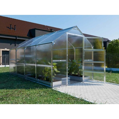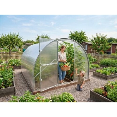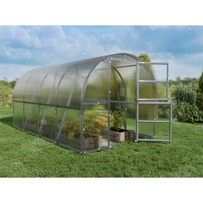 Ocelový zahradní skleník LANITPLAST TIBERUS SE 3 x 4 m PC 4 mm Konstrukce skleníku je sestavena ze silných nosných oblouků (žárově pozinkované ocelové profily síly 1 mm a...
