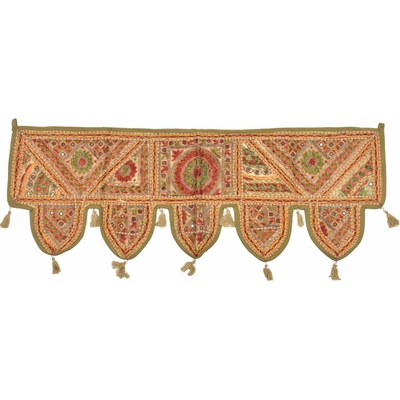 Sanu Babu Závěs nad dveře, řetězová výšivka, sklíčka, bambulky, 103x36cm (ZE)