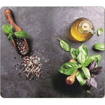 Víceúčelová krájecí deska 56 x 50 cm, sklo, motiv bazalka KESPER Tato víceúčelová skleněná krájecí deska s motivem bazalky je ideální pro ochranu varné desky i kuchyňské linky....
