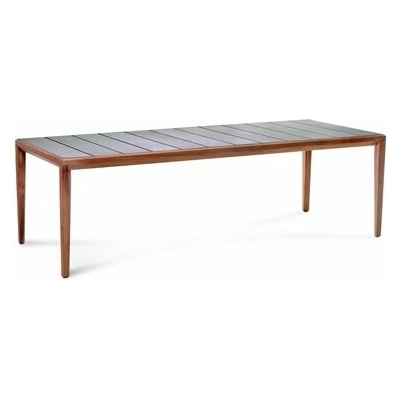 Jídelní zahradní stůl Teka značky Roda. Konstrukce stolu je z masivního teakového dřeva a deska z keramiky (s nebo bez glazury). Rozměry: obdélníkový 243x102 cm, výška 74 cm