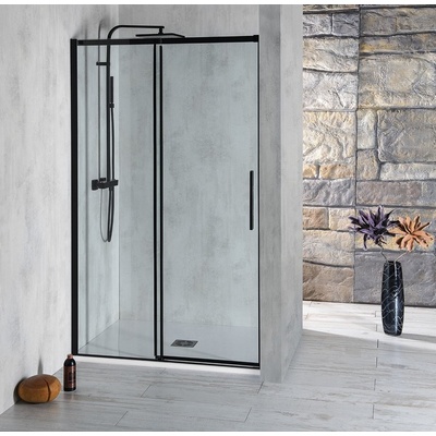 - šířka: 90 cm- skutečný rozměr pro instalaci do výklenku: 87,5-90,5 cm- vstupní šířka: 46 cm- výška: 195 cm- barva profilu/komponentu: matná černá- 6 mm čiré bezpečnostní sklo-...