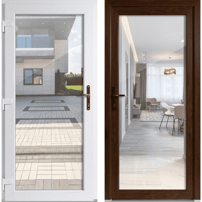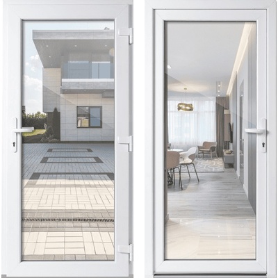 Skladem – jednokřídlé vchodové plastové dveře Celoprosklené (3/3 sklo čiré) s izolačním dvojsklem čirým 32mm v rozměru 110x210 cm (rozměr i se zárubní) se otevírají ven a jsou...
