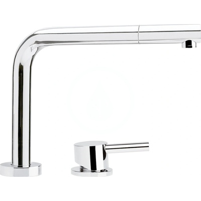 Stojánková dřezová baterie, vhodná pod okno - lze vysunout a položit, provedení Chrom, výška 315 mm, vytahovací koncovka s perlátorem, pro otvor 35 mm, otočná o 180 °.Součástí...