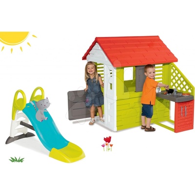 Smoby set skluzavka Toboggan KS s délkou 150 cm a oboustranná houpačka dinosaurus s klaunem 310269-18