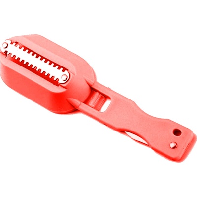 Praktická škrabka se zásobníkem na rybí šupiny a nožíkem na vykuchání.