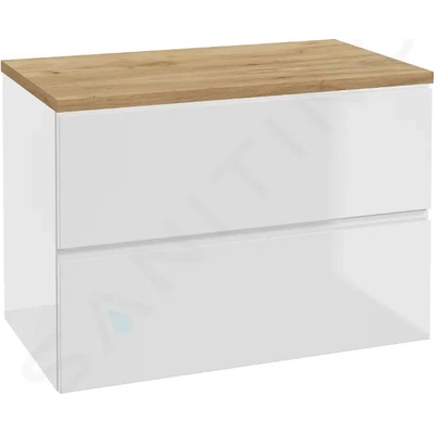 Umyvadlová skříňka včetně desky bez výřezu - rozměry skříňky: šířka 800 mm, hloubka 460 mm - materiál skříňky: dřevotříska - barva: lesklá bílá - celá skříňka je lakovaná s...