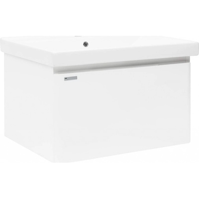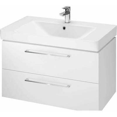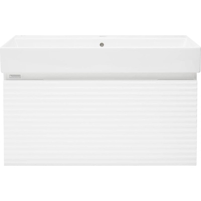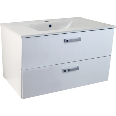 Závěsná koupelnová skříňka s keramickým umyvadlem v bílé barvě s lesklým povrchem o rozměru 80x46 cm. Povrch v provedení fólie.