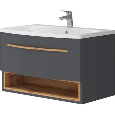 Specifikace produktu: Rozměry skříňky: Šířka: 80 cm Hloubka: 46 cm Výška: 47 cm Barva korpusu: Grafit mat Materiál korpusu: Lakovaná deska Barva čelní strany: Grafit...