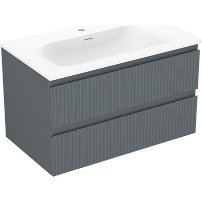 Koupelnová skříňka s keramickým umyvadlem Valmont 80. 2 zásuvky SoftClose. V horní zásuvce je výřez pro sifon. Skříňka je určena k zavěšení na stěnu. Korpus: LTD 16 mm v dekoru...