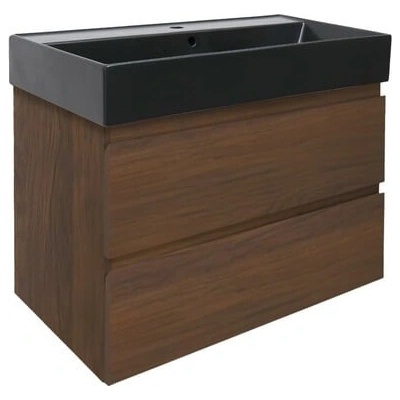 Závěsná koupelnová skříňka s keramickým umyvadlem v černém dekoru s matným povrchem o rozměru 80x56x46 cm. Povrch v provedení lamino. ZÁRUKA 5 LET, dostupnost náhradních dílů...