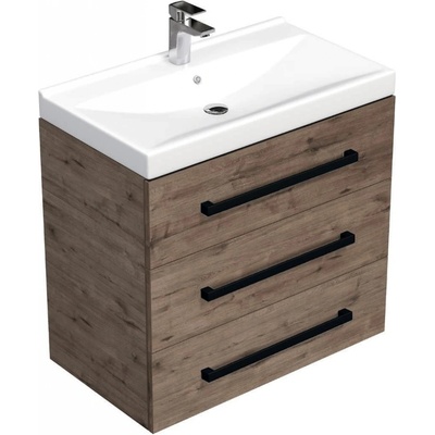 Závěsná koupelnová skříňka s černou úchytkou a keramickým umyvadlem v provedení dub wellington s matným povrchem o rozměru 80x71x46 cm. Povrch v provedení lamino. ZÁRUKA 5 LET,...