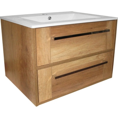 Závěsná koupelnová skříňka s keramickým umyvadlem v dekoru dub v matném provedení o rozměru 80x56x45 cm. S plnovýsuvem a dotahem. ZÁRUKA 5 LET, dostupnost náhradních dílů 10...