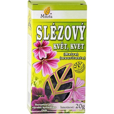 Milota Sléz květ 20g x: V lidovém léčitelství se Slez, používá vnitřně v macerátu jako mucilaginosum při zánětech horních cest dýchacích, při zánětu žaludku a střev a jako mírné...
