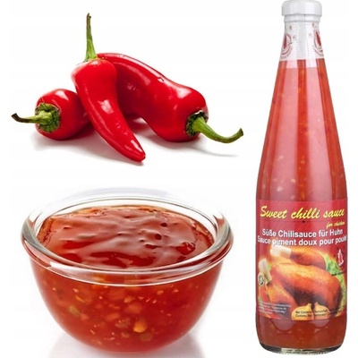 Populární chilli omáčka je typická pro thajskou, malajskou a západní kuchyni. Sladko-pálivá omáčka je vyrobena z červených chilli papriček, doslazená cukrem a dochucená česnekem...