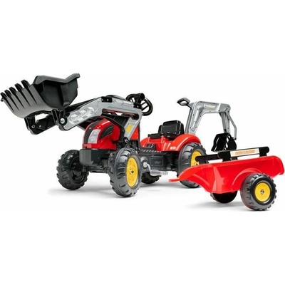Šlapací traktor s nakladačem, přívěsem a lžící | červeno-žlutý Dejte svému potomkovi pocítit, že je řidičem traktoru a pořiďte mu jeho první šlapací traktor. Červeno...