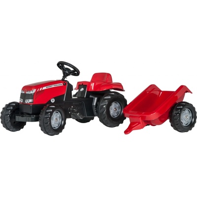 Traktor šlapací dětský MASSEY FERGUSON s přívěsem ROLLYKID 012305 Dětský šlapací traktor s jednonápravovým přívěsem (dvoukolka) Plastová tichá kola se šípovým vzorkem...