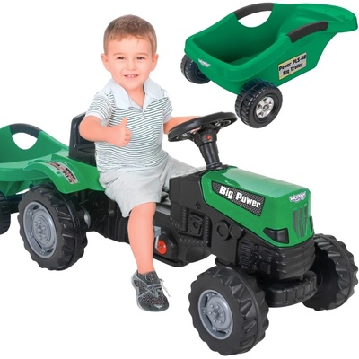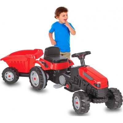 Šlapací traktor s odpojitelným vozíkem. Snadno ovladatelný a stabilní, vyroben z kvalitního plastu Pohon obou zadních kol. Polohovatelné sedátko, klakson na volantu...