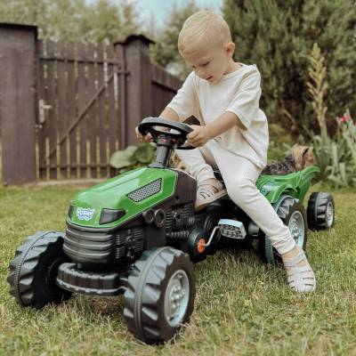 Traktor je vhodný dopravní prostředek pro kluky, kteří rádi někam jezdí. Široká kola poskytují perfektní stabilitu, ovladatelnost a manévrovatelnost i pro ty nejmenší řidiče....