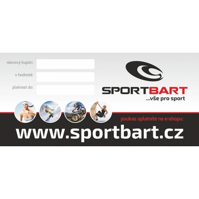 - slevový kupón uplatníte na našem e-shopu: www.sportbart.cz - platnost 3 měsíce - na e-mail Vám dojde slevový kód, který se vyplňuje v košíku objednávky - na e-mail Vám dojde obrázek k případnému vytištění/darování