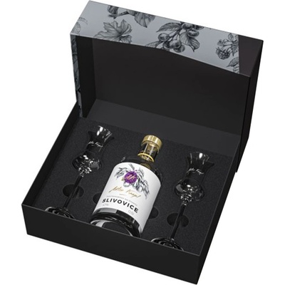 PRODEJ POUZE OSOBÁM STARŠÍ 18 let !!! Luxusní dárková balení tzv. klapboxy z tvrdého papíru tloušťky 1,4 mm s ofsetovým barevným tiskem a matnou laminací naplněné lahví našeho kvalitního destilátu a degustačními skleničkami z českého skla. Destilát je vyroben...