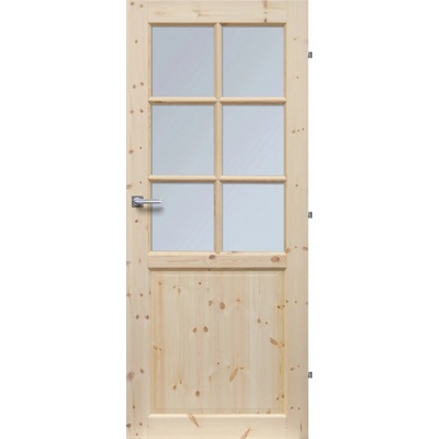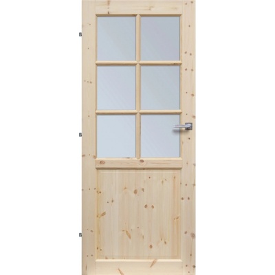 Prosklené palubkové dveře. Jsou určené pro použití jako druhé vstupní dveře. Jsou vyrobeny ze smrkových palubek, bez povrchové úpravy, broušené a připravené pro nátěr. Dveře lze vsadit do standardní ocelové zárubně, nebo do dřevěné zárubně tesařské, či...