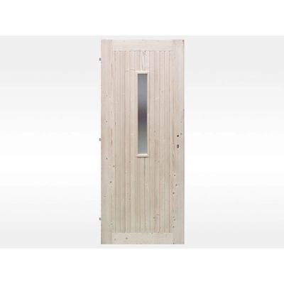 Prosklené palubkové dveře. Jsou určené pro použití jako druhé vstupní dveře. Jsou vyrobeny ze smrkových palubek, bez povrchové úpravy, broušené a připravené pro nátěr. Dveře...