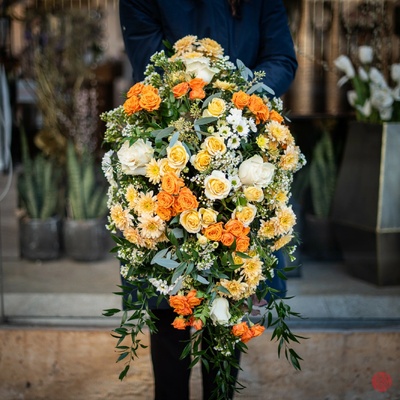 Vzhled smutečního aranžmá se může mírně lišit v závislosti na sezónní dostupnosti květin, avšak vždy dbáme na to, aby bylo pečlivě sestaveno s maximální pozorností k detailu....