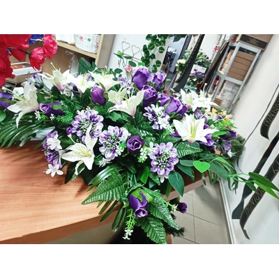 Vypichované aranžmá z čerstvých květin určené pro položení na rakev a posléze i na místo piety. Vypichovaná kytice do zelené hmoty s vodou, určená na položení. Vhodná pro další položení na hrob, kde vydrží i 14 dnů. Délka 50 cm, šířka 30 cm, výška 25 cm. Tento typ...