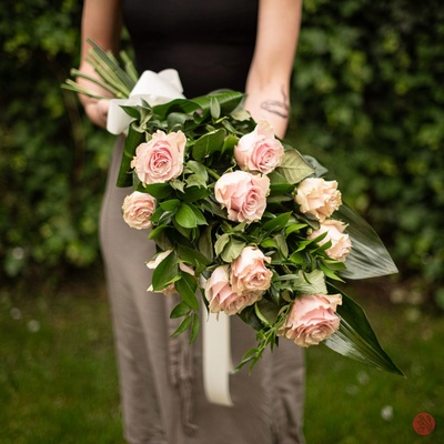 Tato elegantní smuteční kytice z růžových růží je vkusnou volbou pro důstojné rozloučení. Kombinace 10 růžových růží a zeleně ruscusu vytváří harmonický celek, který podtrhuje...