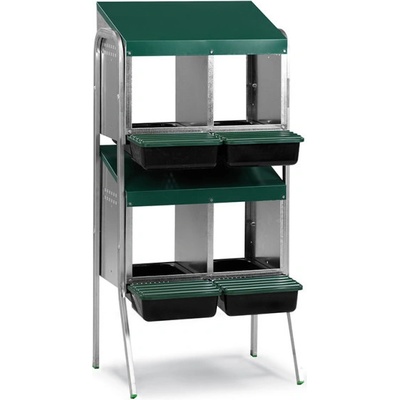 Snáškové hnízdo pro slepice se sběrným košíkem na vejce GAUN 10128 na nožičkách dvojité Dvojité snáškové hnízdo pro slepice na nožičkách, se sběrným košíkem na vejce, kapacita...