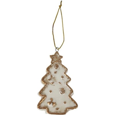 Stromek k zavěšení. Rozměry: 5,8 x 1 x 9 cm. Materiál: porcelán. Barva: krémová, zlatá. Tento výrobek není hračka.