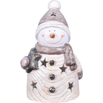 Dekorace v podobě sněhuláka v kabátku se šálou a hvězdou. Vhodná pro období Vánoc a zimy. Funguje jako svícen na čajovou svíčku. Pomůže navodit atmosféru všem milovníkům...