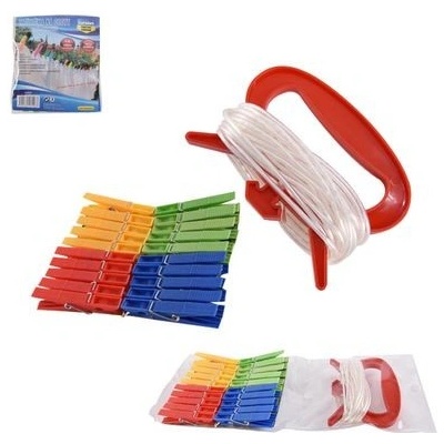 Orion Šňůra prádlová 5m+kolíčky set (530929) Nepostradatelná taštička na cestách - sada 20ks barevných kolíčků a 5 m prádelní šňůry Assort barev Materiál: plast